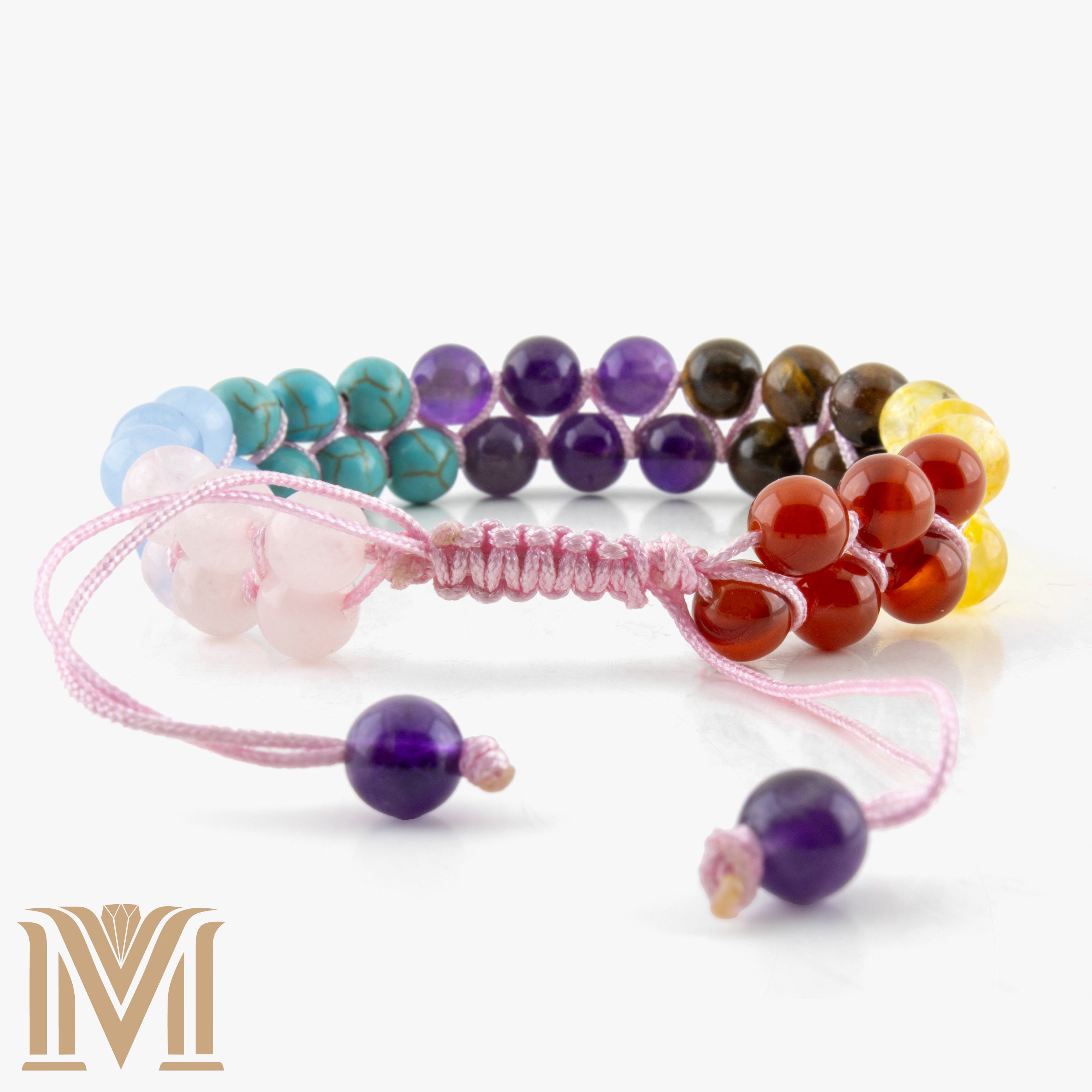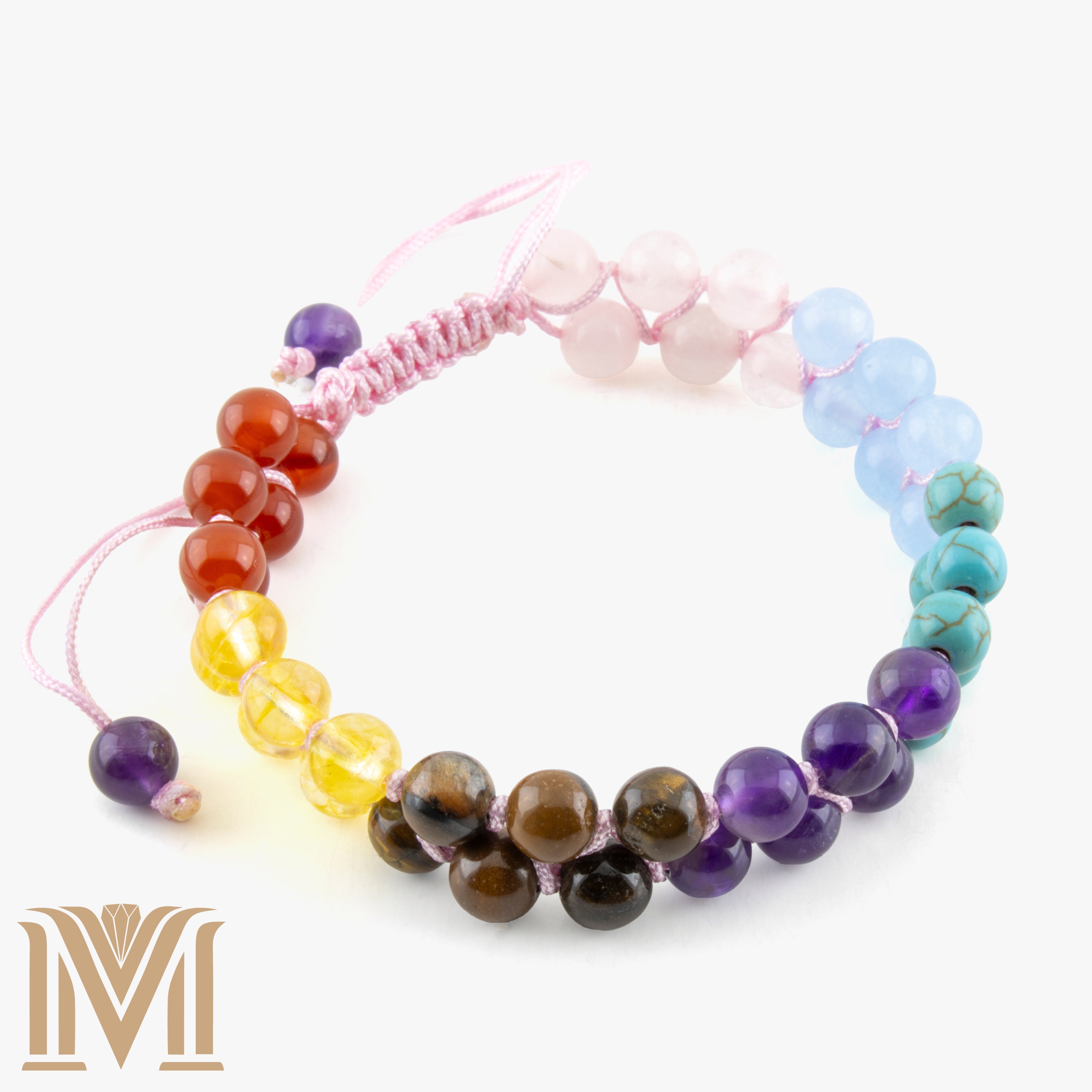 Balance your energy in style with the Chakra Glow bracelet — a handcrafted macramé piece that combines beauty, meaning, and mindful intention. This double-row adjustable bracelet features vibrant beads representing the seven chakras, thoughtfully knotted on a soft pink cord to create an eye-catching and comfortable design.