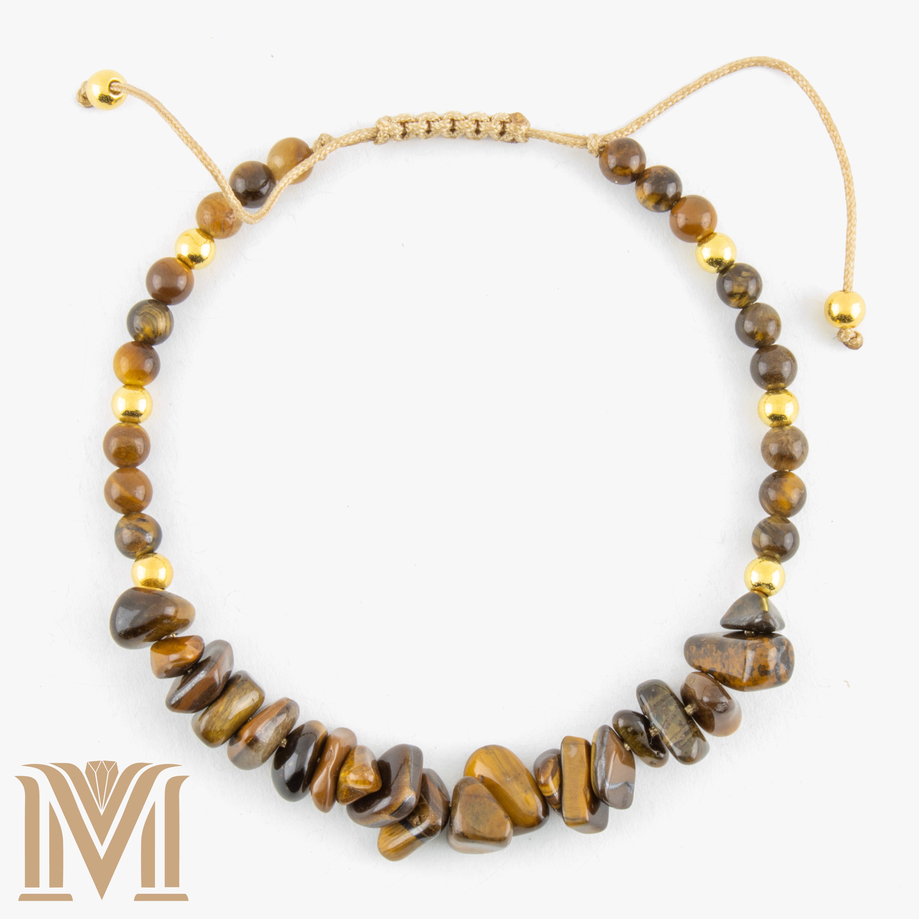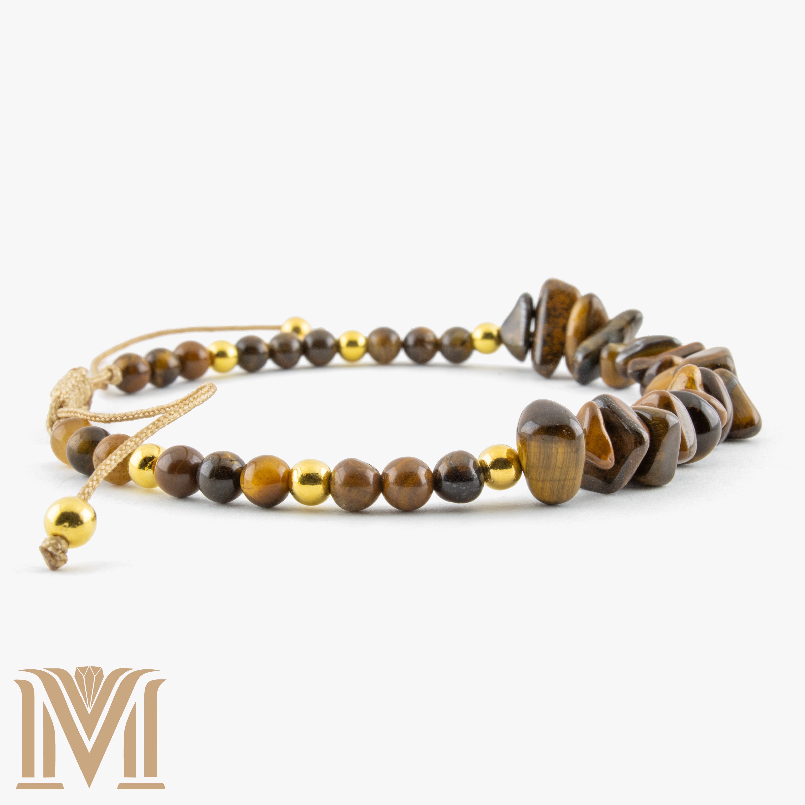 Radiating the warmth of golden hour, the Amber Bloom bracelet is handcrafted with irregular and round Tiger’s Eye beads paired with radiant golden stainless steel accents. This bracelet captures the essence of grounded elegance, offering a bold yet earthy statement that harmonizes beautifully with both casual and elevated ensembles.