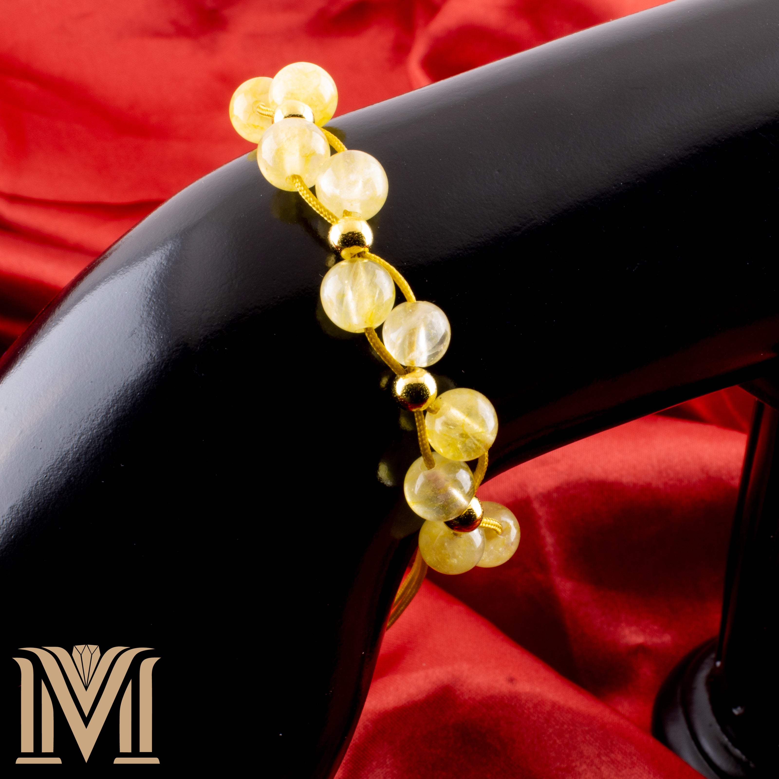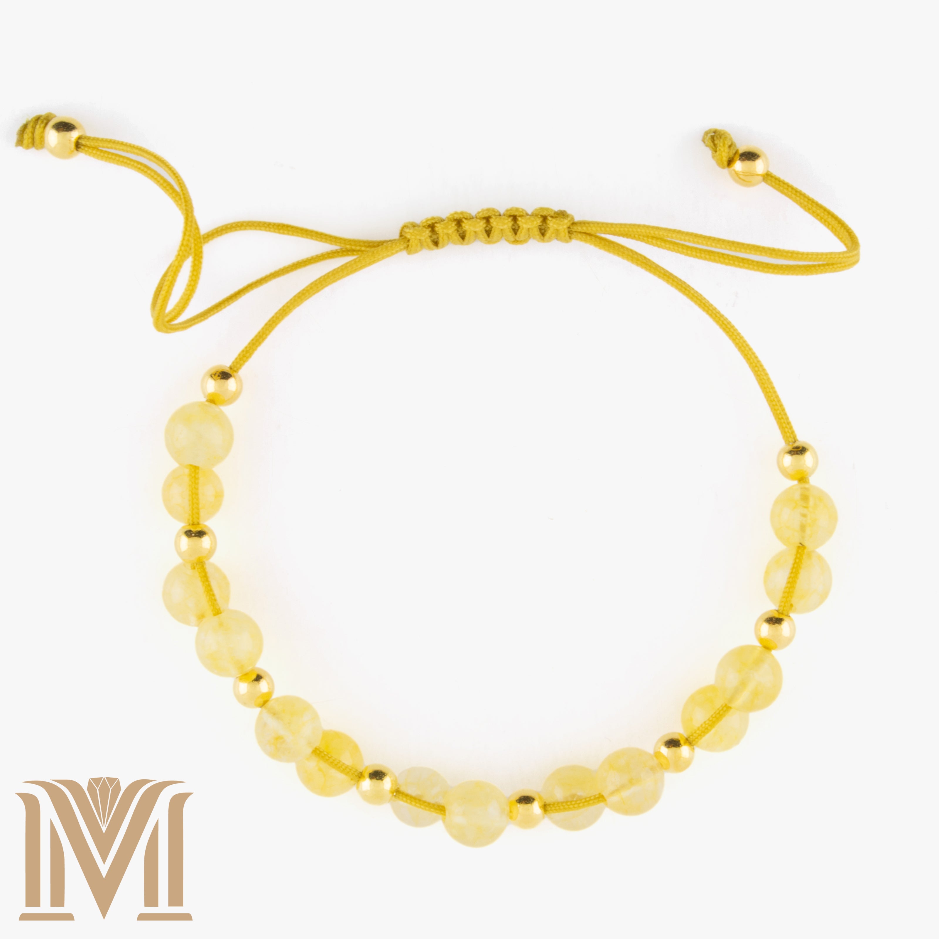 Bask in the golden warmth of Sunbeam Glow, an adjustable handmade bracelet crafted with radiant citrine beads and lustrous golden stainless steel findings. Each sunny bead reflects the brightness of joy and energy, making this bracelet a glowing statement of optimism and empowerment. Woven on vibrant golden yellow thread, this piece radiates effortless charm, perfect for sunny days or uplifting moods.