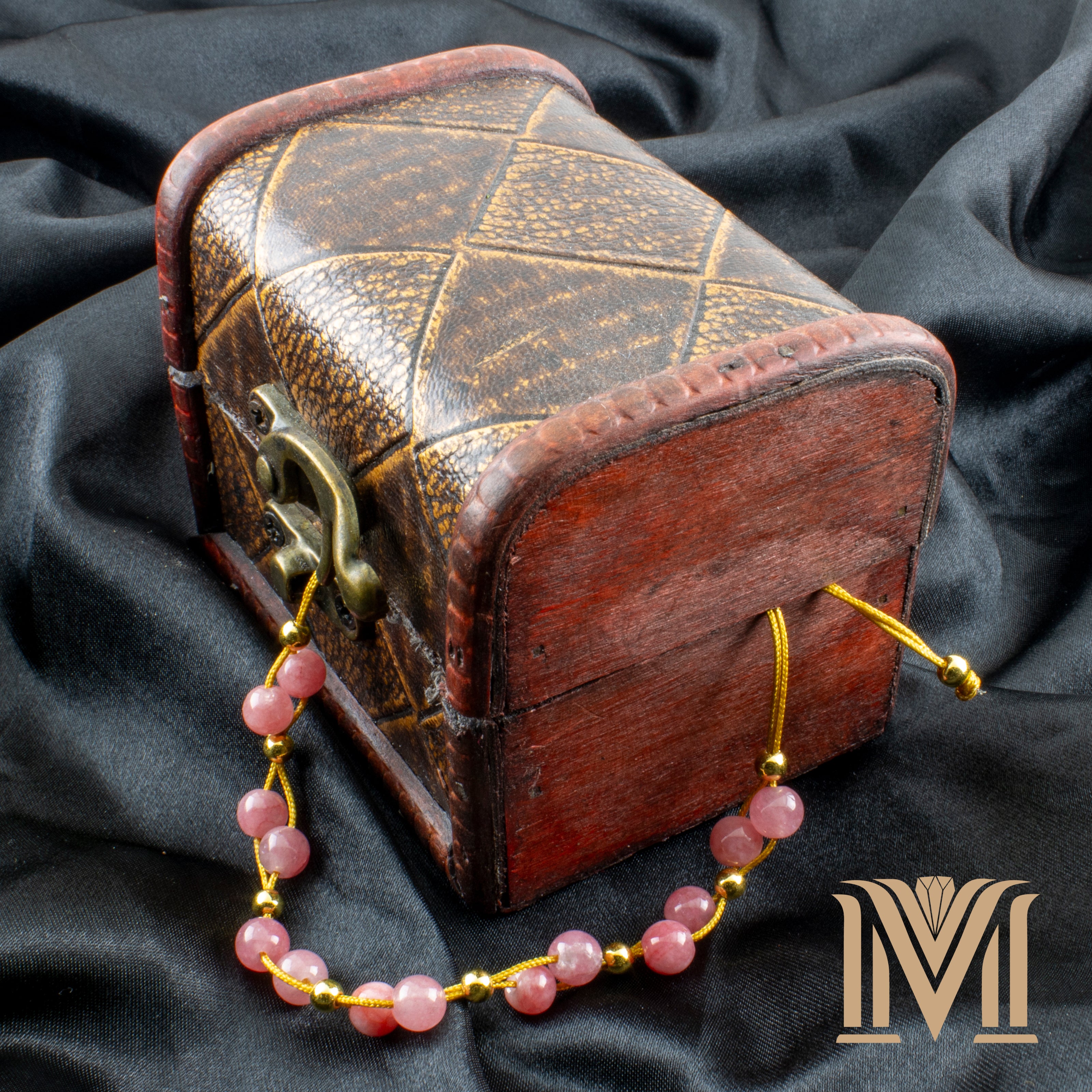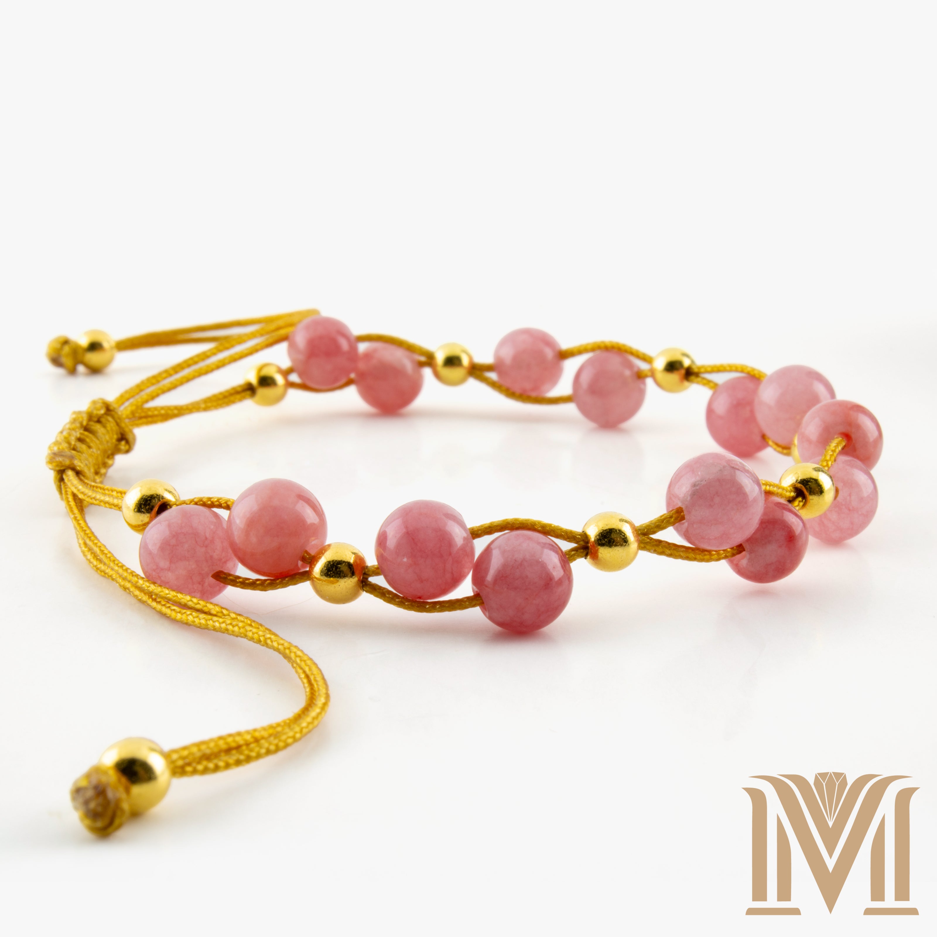 Radiating playful warmth and soft energy, Coral Glow is a handcrafted adjustable bracelet made with vibrant watermelon quartz beads and gleaming golden stainless steel findings. Designed for women and kids alike, this bracelet combines healing crystal intention with a bright, cheerful aesthetic.