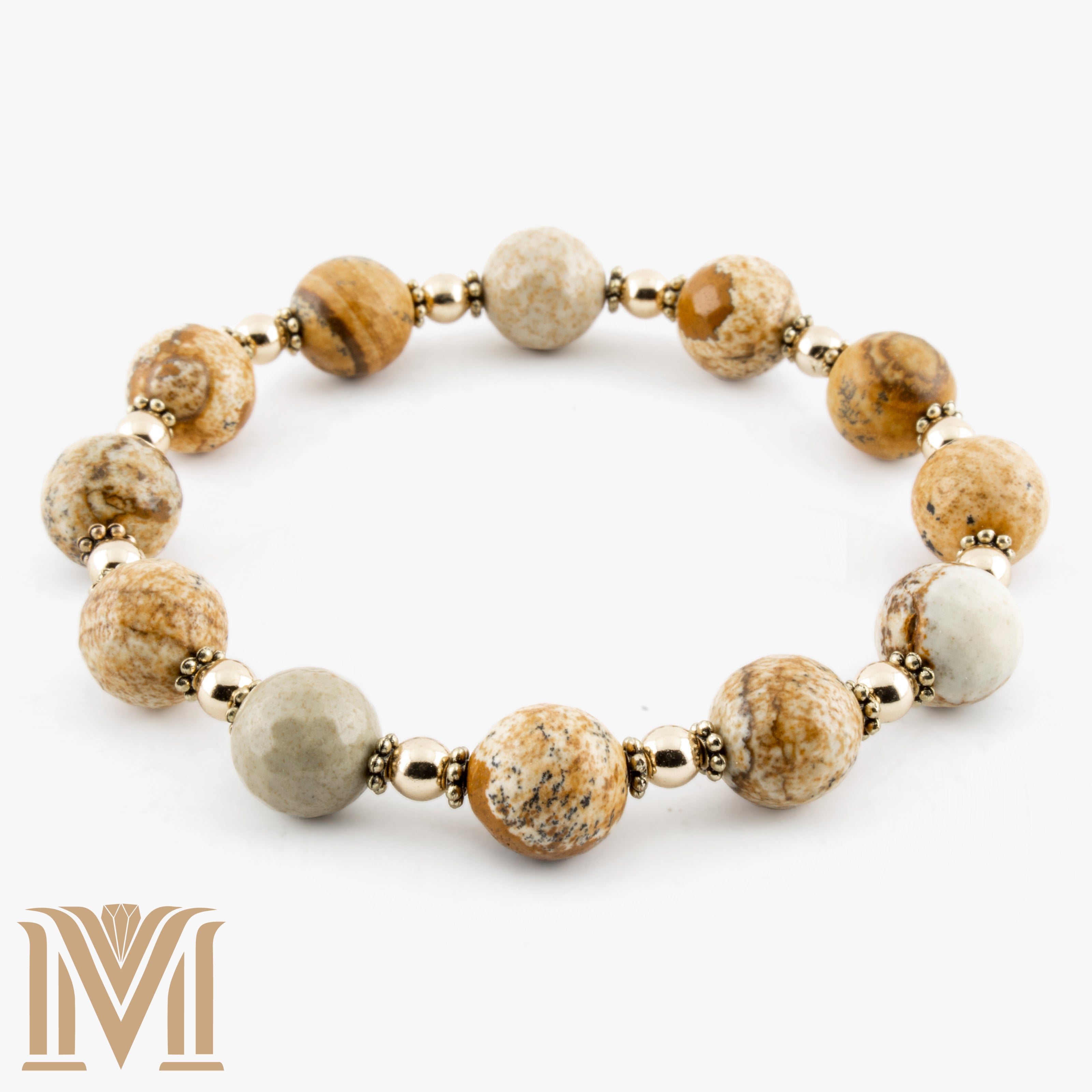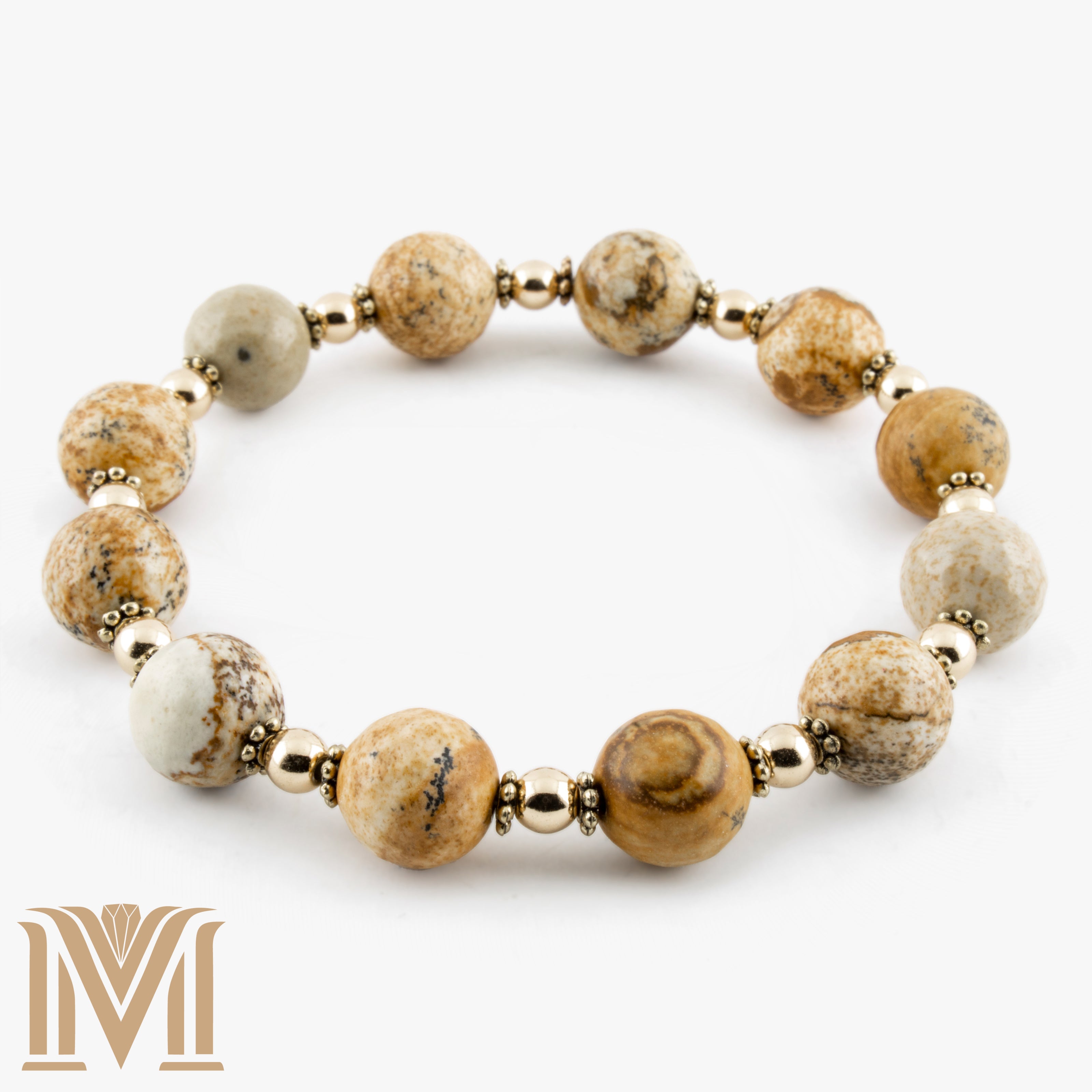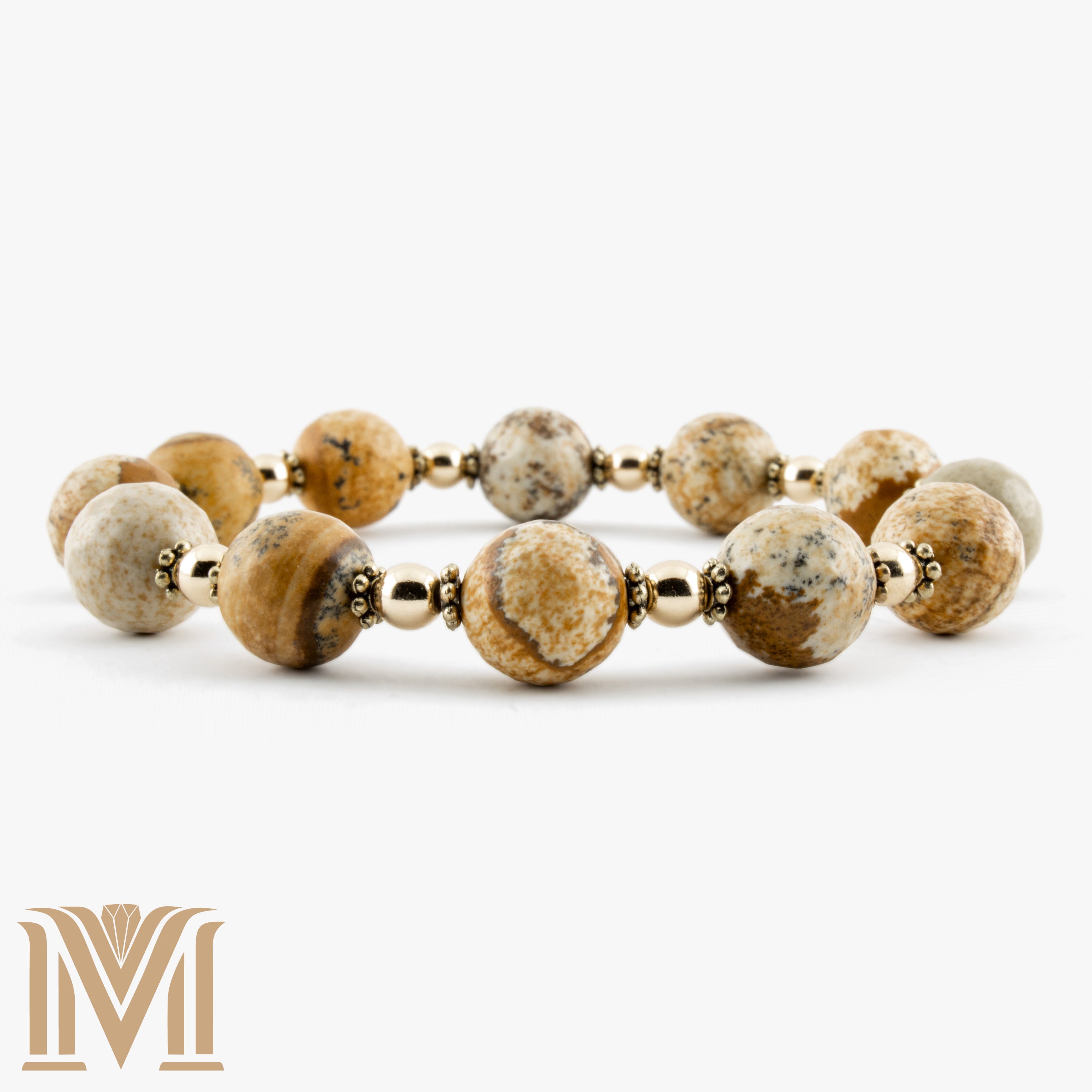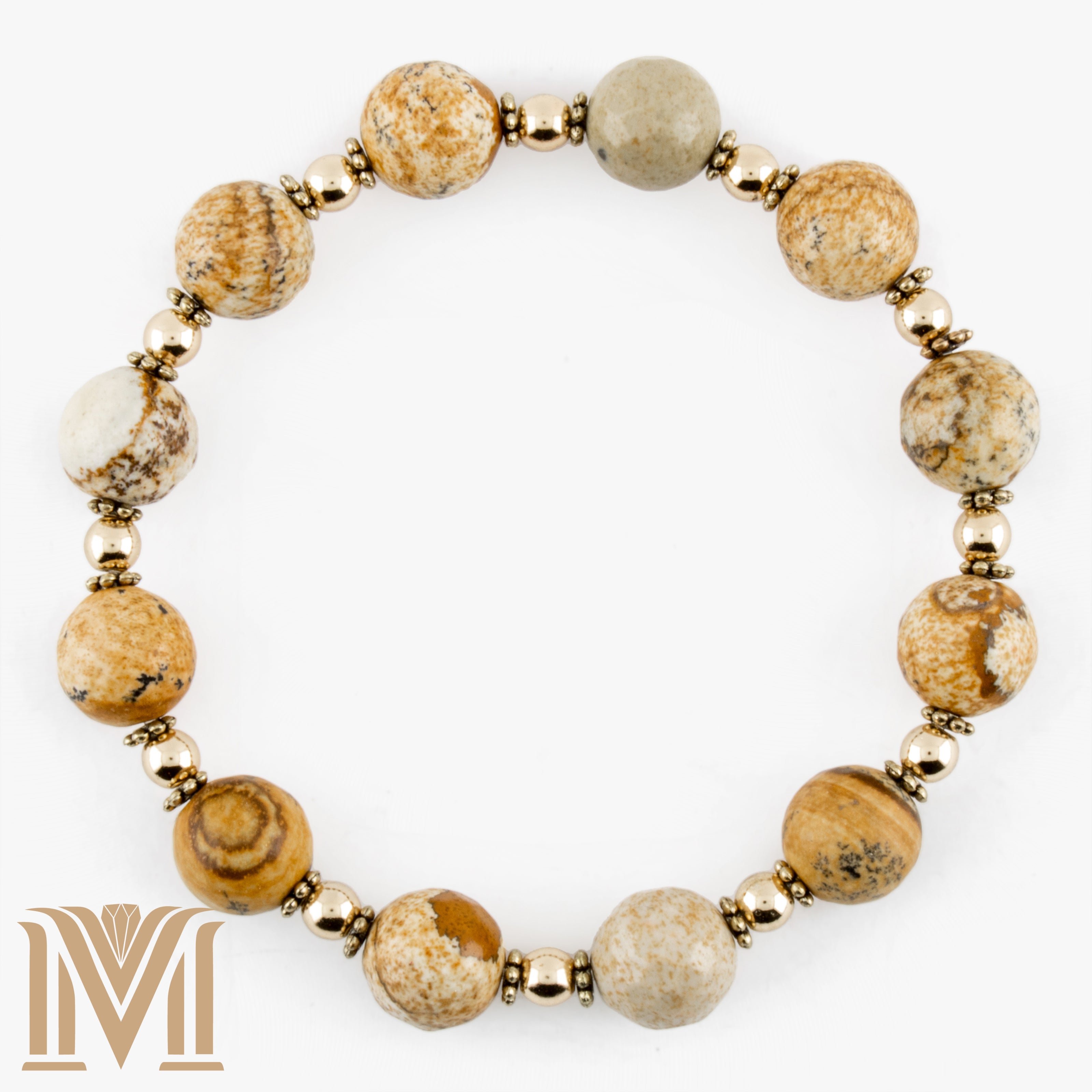 Embrace the grounding energies with our Earthy Harmony bracelet. Crafted from stunning Picture Jasper beads, each stone showcases unique patterns reminiscent of desert landscapes and ancient canyons. This bracelet is more than just an accessory; it's a piece of wearable art that connects you with nature's profound beauty.