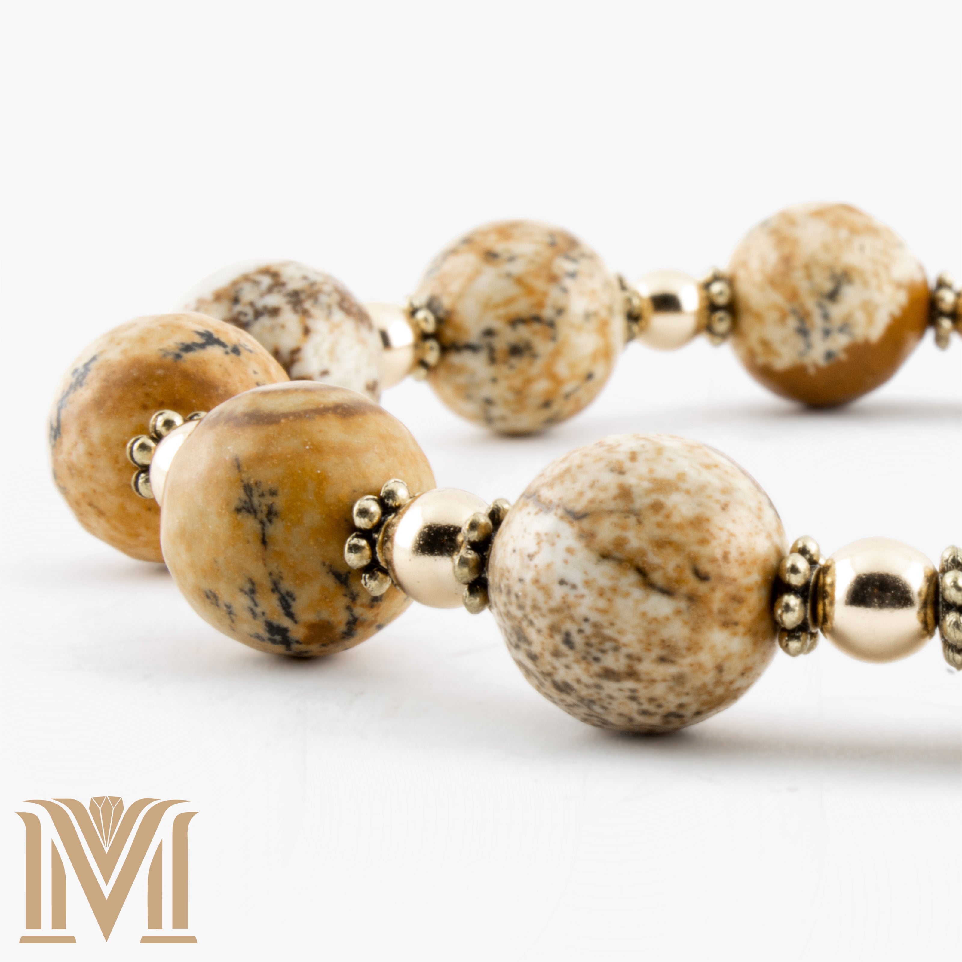 Perfect for casual outings or a bohemian-inspired outfit, Earthy Harmony adds a touch of rustic elegance to any ensemble. The warm, earthy tones of the Picture Jasper beads pair beautifully with neutral colors and natural fabrics, making it a versatile addition to your jewelry collection.