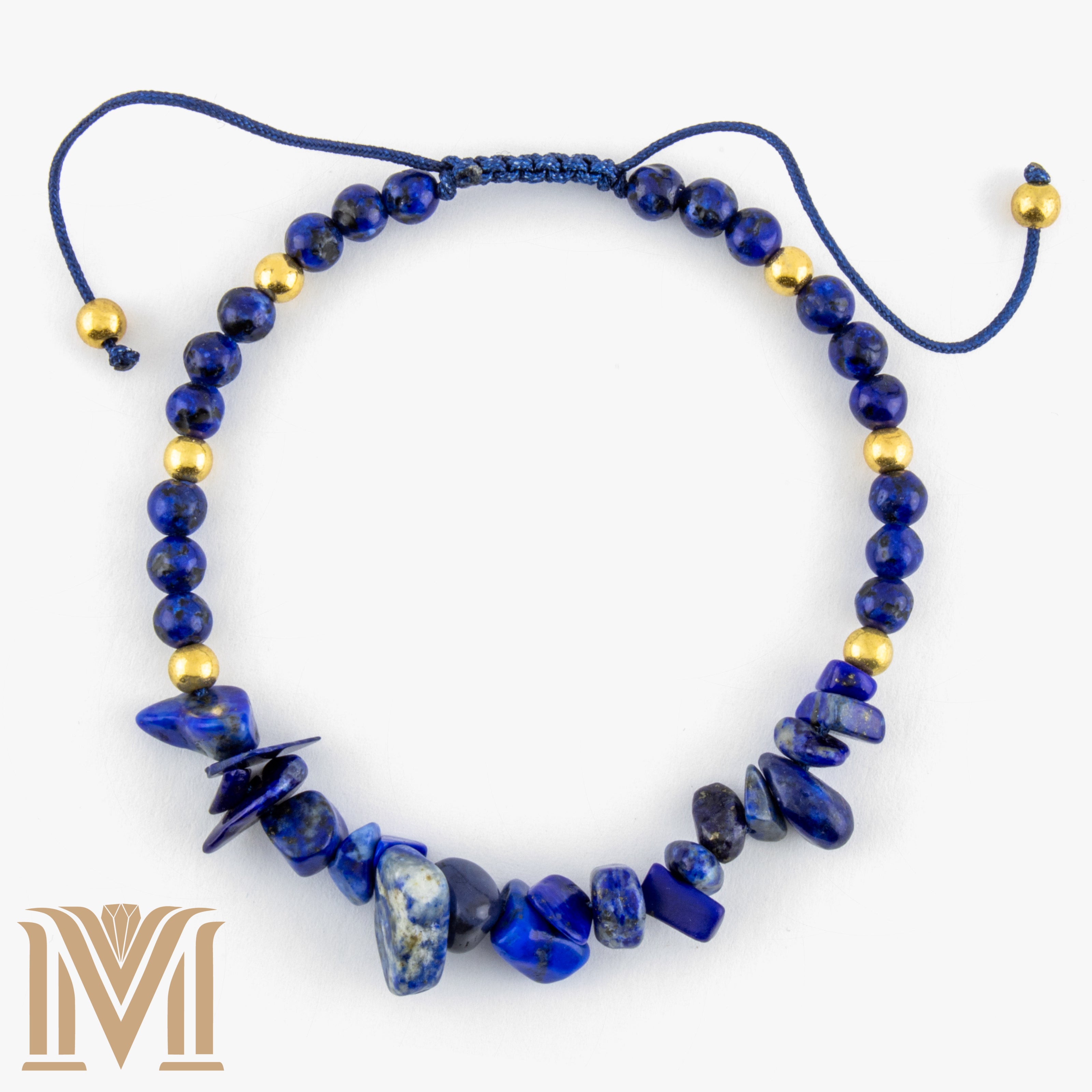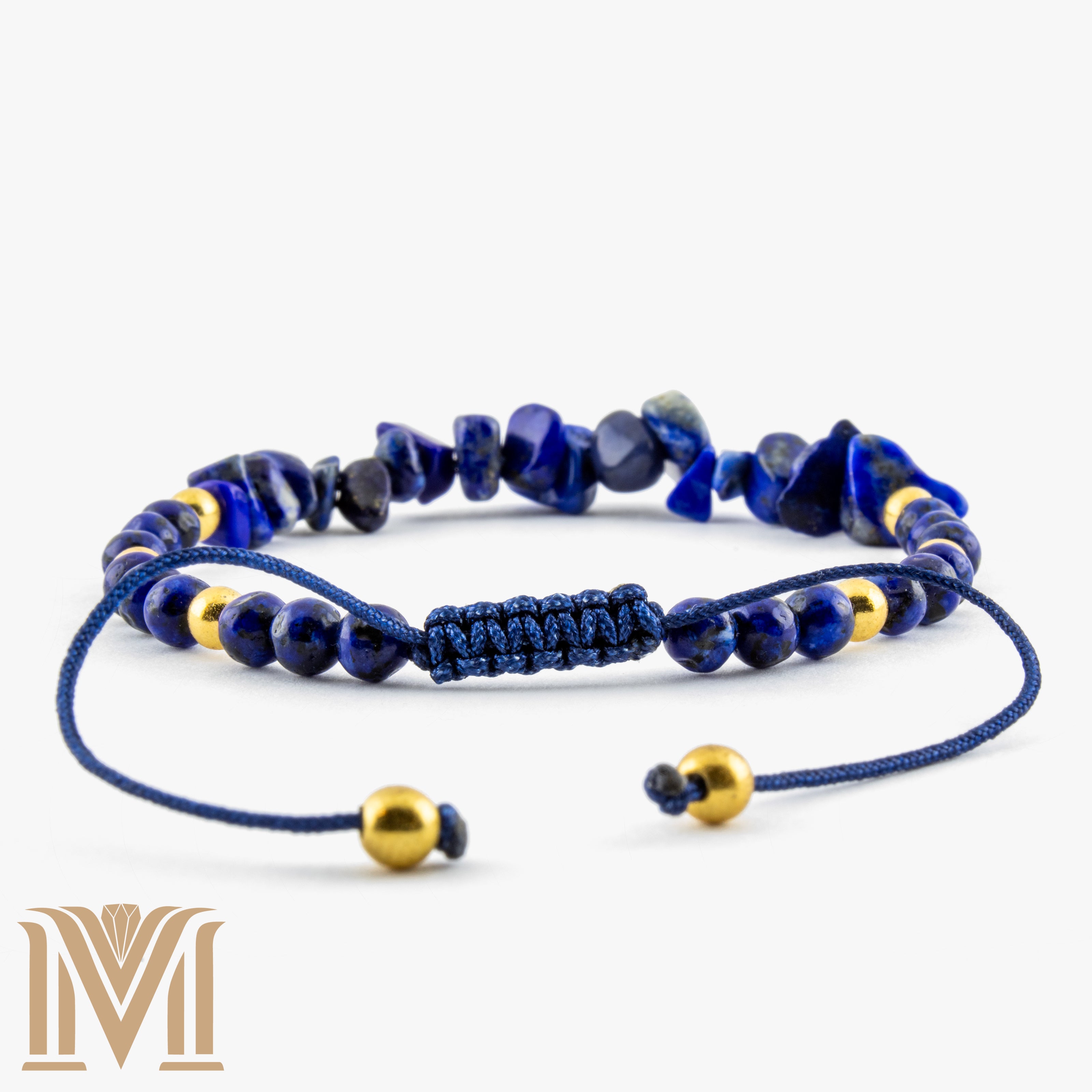 Let the waves of elegance wash over you with Ocean Bloom, a stunning handmade bracelet crafted from round and irregular Lapis Lazuli beads. This adjustable piece blends ancient mysticism with modern flair, designed to elevate your look with every subtle shimmer of gold.