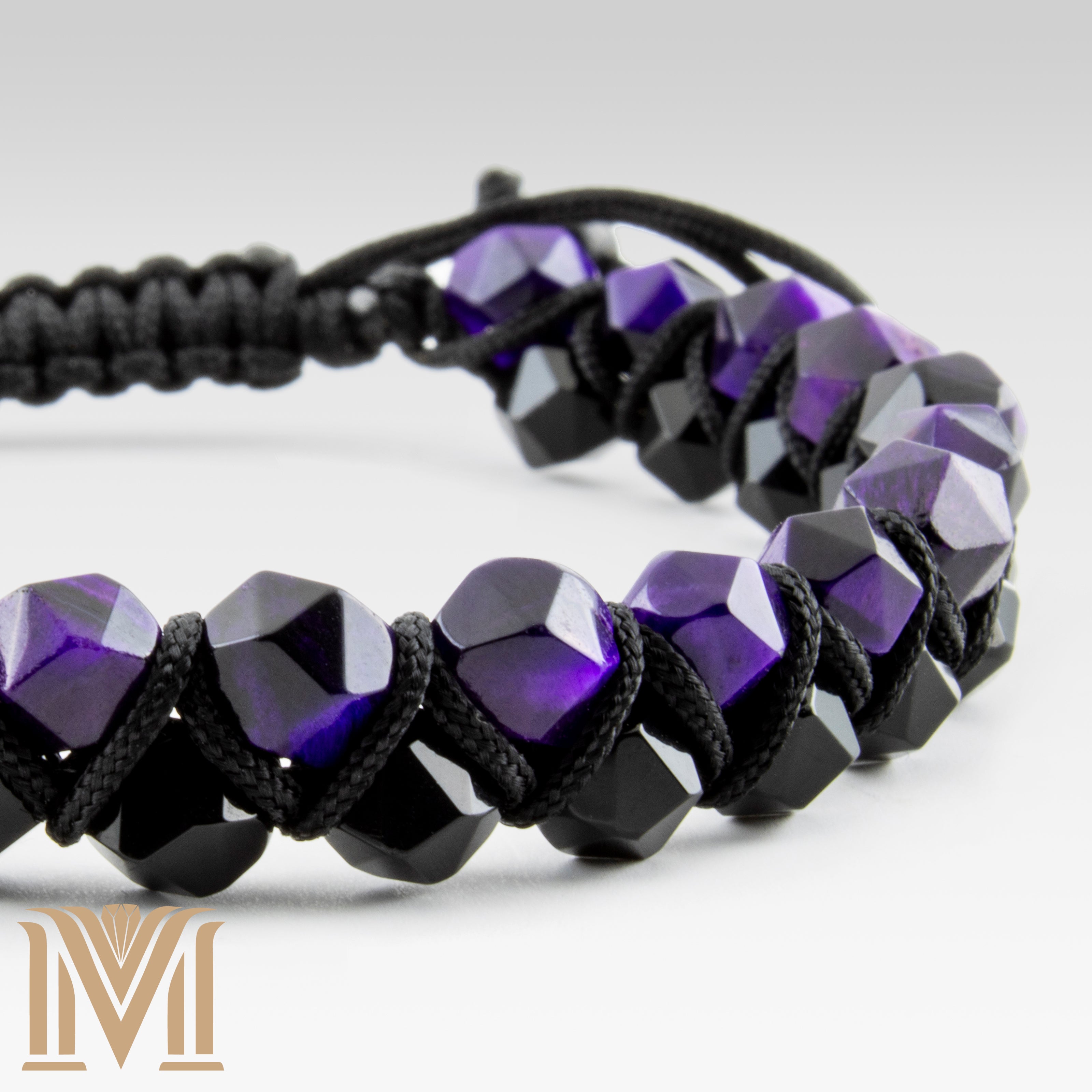 Unveil the enigmatic charm and protective energy of our Mystic Aura bracelet, a captivating blend of Purple Tiger Eye and Onyx gemstones. The deep, mesmerizing hues of the Purple Tiger Eye beads shimmer with an aura of mystery and intrigue, symbolizing insight, clarity, and spiritual awareness. Historically, Purple Tiger Eye is known for enhancing intuition and providing a sense of calm and balance.