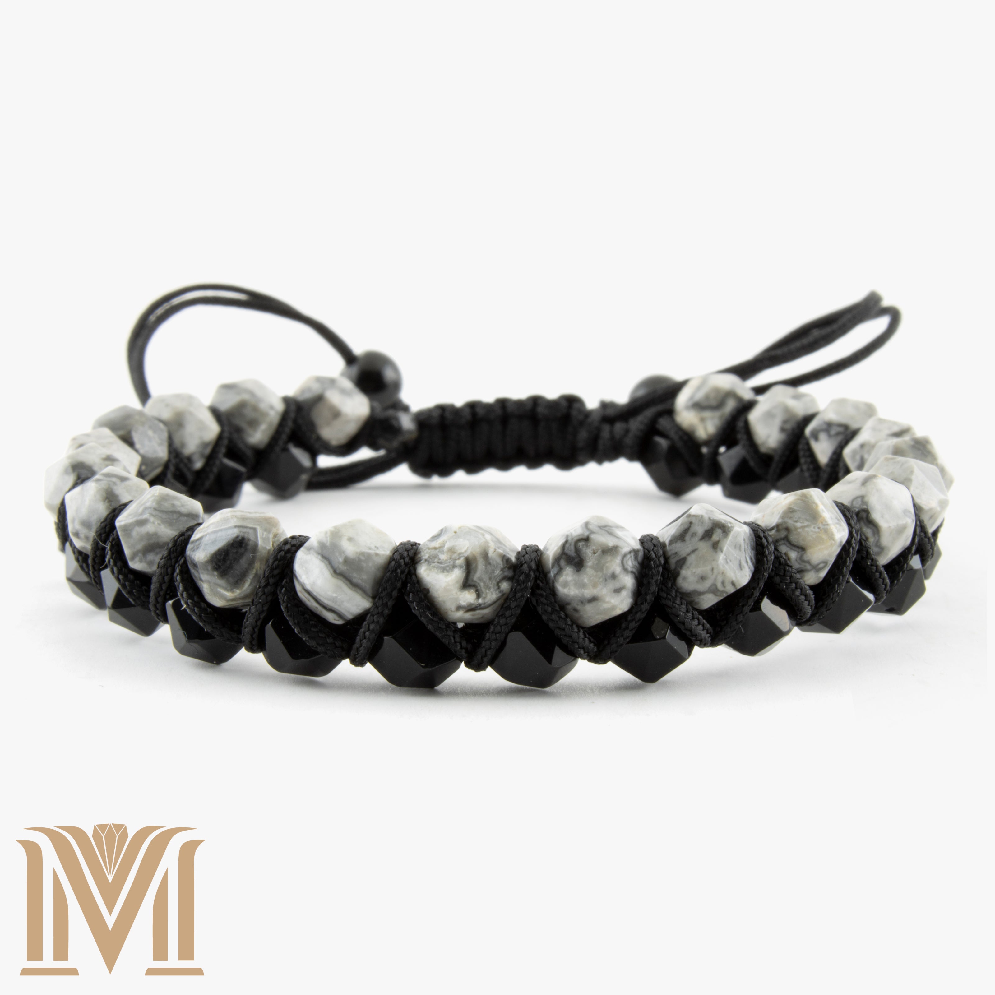 This powerful unisex bracelet brings together the grounding strength of Black Onyx with the calming stability of Map Stone, offering more than just style — it's a statement of inner alignment and resilience. With its adjustable double-layered cord design, this bracelet fits comfortably and securely on any wrist, making it the perfect daily companion.