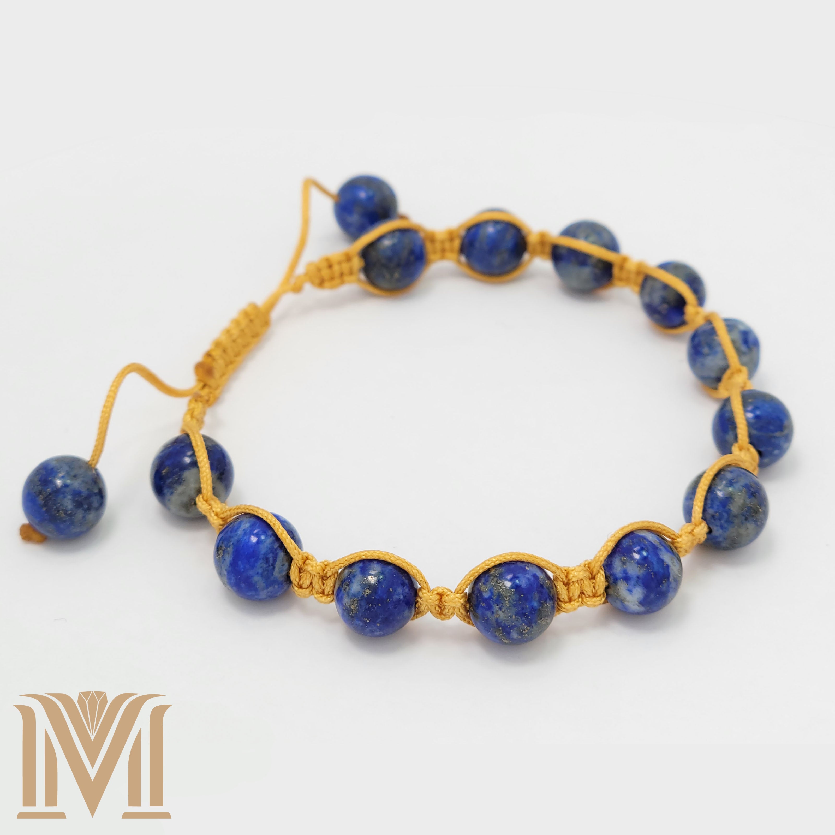 The Azure Knot Bracelet's unique specifications include a fully adjustable macramé design, ensuring a comfortable fit for all wrist sizes. The natural Lapis Lazuli stones are thoughtfully selected for their quality and vibrant color, set in a durable, hand-knotted cord that promises longevity and style.